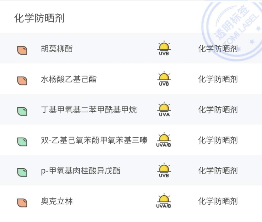 從成分表上我們可以看出來這款防曬是屬于化學(xué)防曬,它里面主要添加的防曬劑有胡莫柳芝,水楊酸乙基乙酯。等一些主要的化學(xué)防曬劑成分,市面上的大部分防曬劑都有這個(gè)成分。