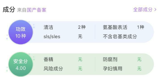 成分中讓我覺得驚艷的地方就是含有46.5%的氨基酸,這個氨基酸含量真的挺讓人心動的,在我使用過的氨基酸洗面奶當中,大部分的氨基酸洗面奶的氨基酸含量不過是在30%,是一支真正意義上的氨基酸洗面奶。PH值6.5屬于弱酸性的洗面奶,接近人體的PH值溫和、且。