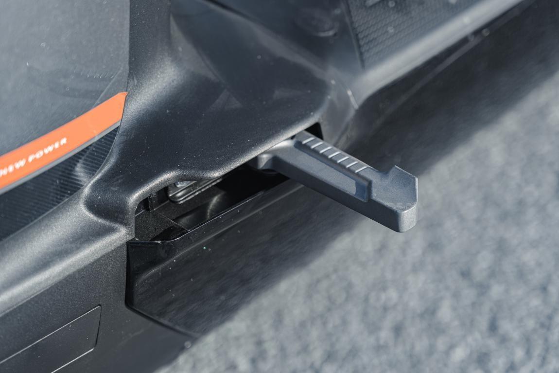 駕駛座前360mm的大檔距,腿部空間很大,放腳的踏板,角度也更舒服,在實際騎行中友好不少,特別是長期駕駛,大空間能讓舒適性加倍。