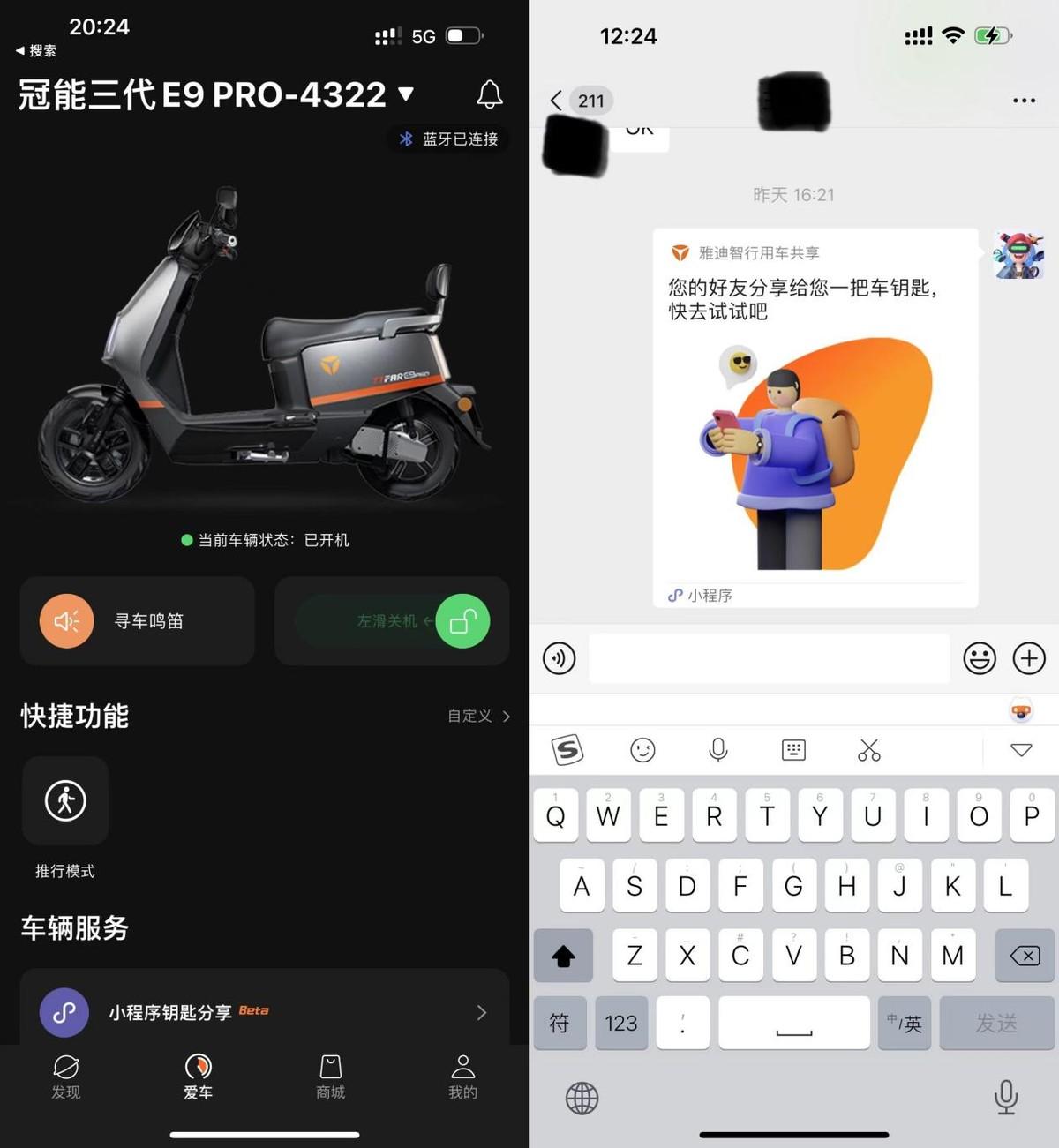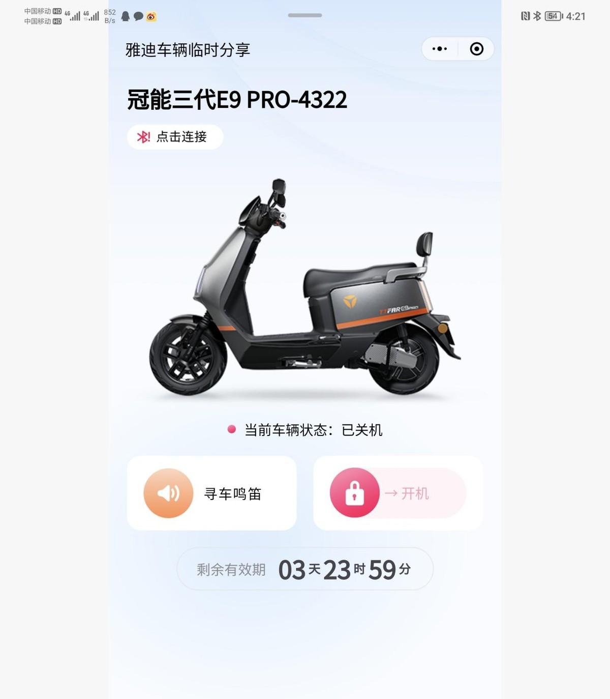 作為雅迪冠能系列的明星產品,智能化也是不容小覷,人車智慧互聯(lián)、手機解鎖、尋車鳴笛、離車休眠……這些都是基本操作,也可以對一鍵開機,定時關機時間,車輛靈敏度等進行設置。更重要的是,還可以通過小程序解鎖,把鑰匙通過小程序分享給你的家人朋友,不用給別人物理鑰匙,也不用費事下載APP,這個功能必須要好評。