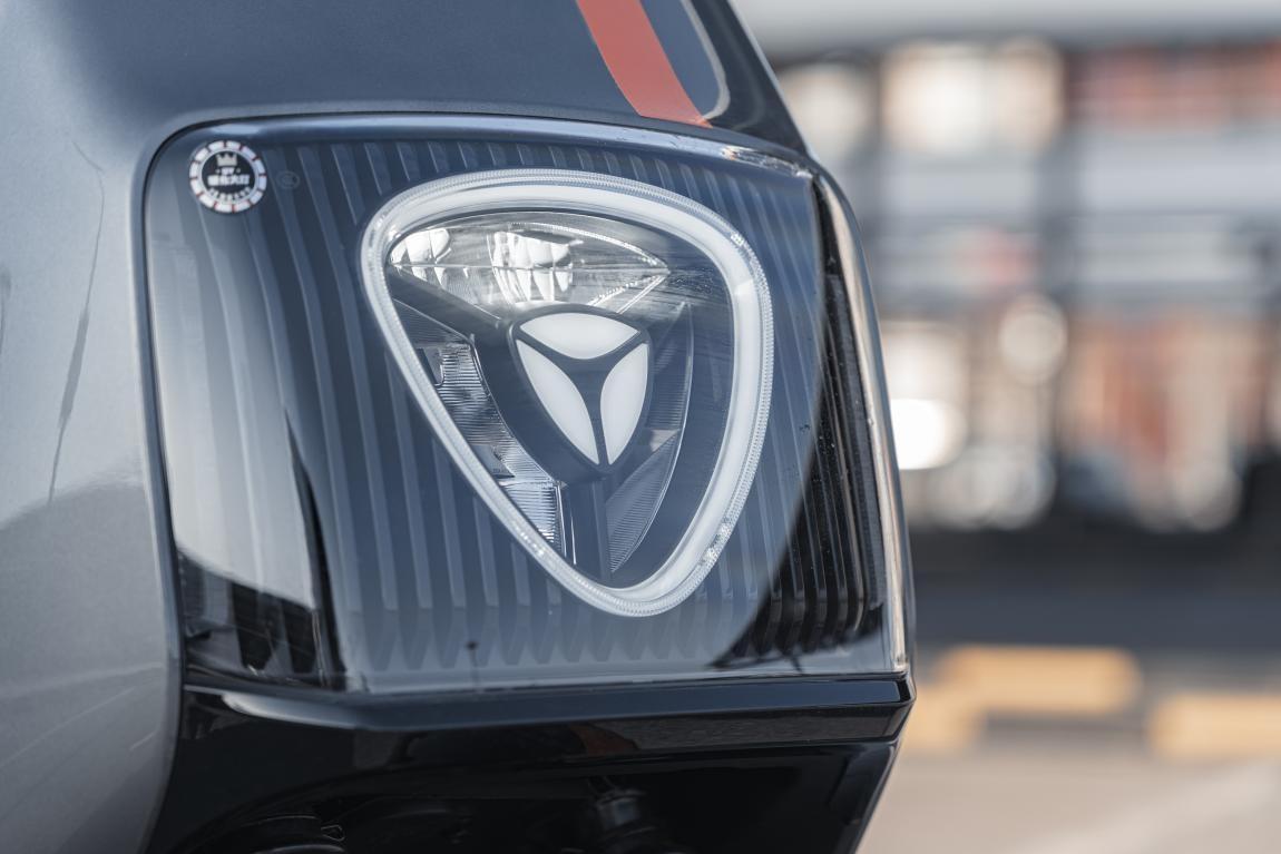 正面的大燈將雅迪自家logo嵌入了進去,高流明的大燈顯得炯炯有神,就算是白天也看得出來很亮,晚上也無需擔心行駛。轉向燈是流光的,賦予燈光更多動感,尾燈同樣亮度不俗,能引起后方注意,行駛。