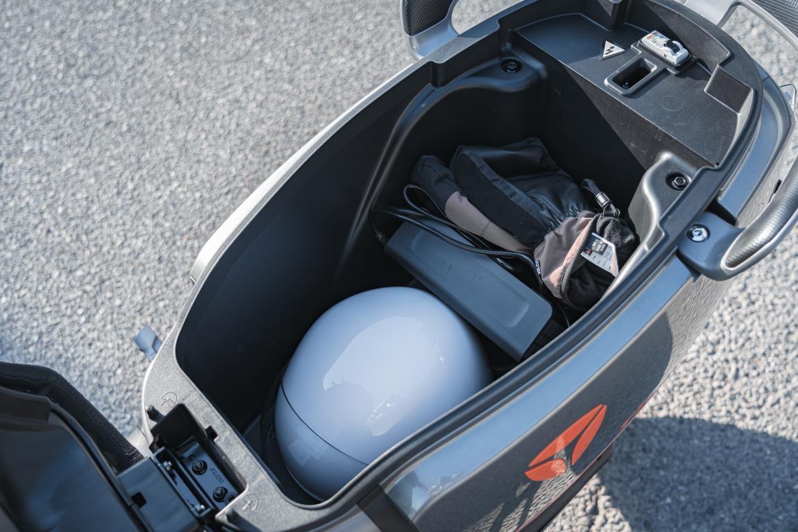 坐墊下還有有32L的座桶,放下頭盔、手套、充電器之后依然還有不少空間,充分滿足日常使用了。