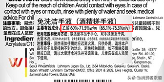 如威露士免洗潔手液標(biāo)簽上就標(biāo)明了兩種符號的對應(yīng)數(shù)值:乙醇60%-71.5%w/w(65.1%-76.3%v/v)。
