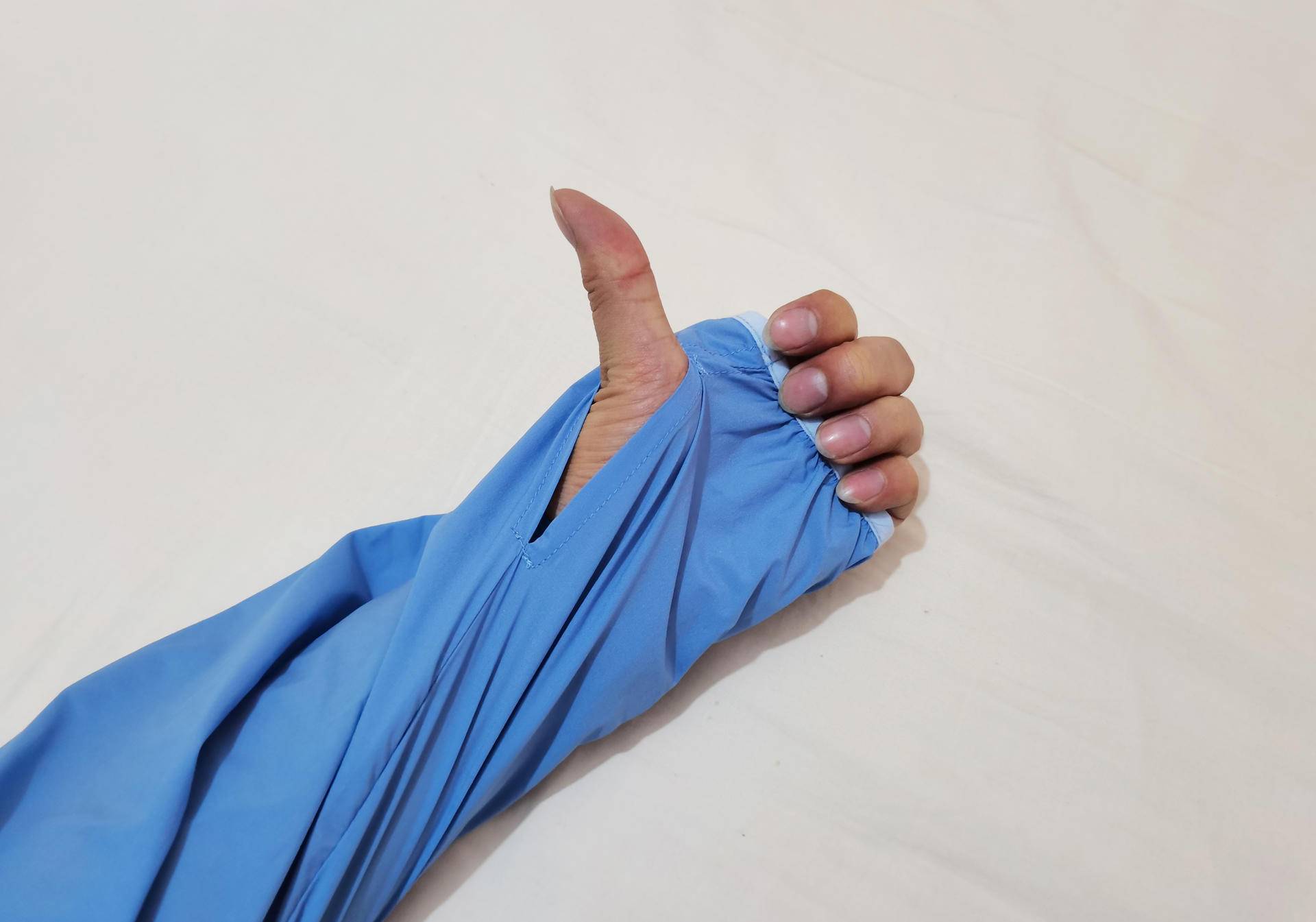 比較貼心的是早風(fēng)高指數(shù)運(yùn)動(dòng)防曬衣的袖口留有可套出大拇指的口,彈力袖口貼合手腕,能有效減少空氣流通,讓運(yùn)動(dòng)無(wú)束縛,騎車開車更。