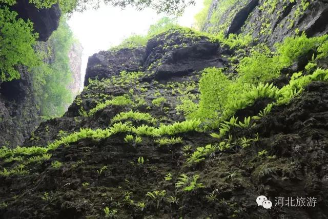 峽谷內(nèi)保持著20℃左右的恒溫,外面接近40度高溫時(shí),進(jìn)入谷內(nèi)卻還有絲絲涼意。峽谷內(nèi)還生長(zhǎng)著一種植物叫耳羽巖蕨,屬蕨類,當(dāng)?shù)匕傩战兴膀隍疾荨被颉把螨X蘭”,它不但可以消毒殺菌,還可以釋放大量負(fù)氧離子,促進(jìn)血液循環(huán),游覽一次百里峽,就等于洗了一次肺。