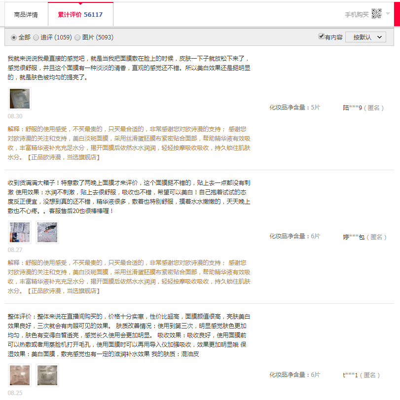 膚白淡斑,其實(shí)不難!歐詩漫美白淡斑面膜讓你花少量的錢換得好的膚質(zhì),現(xiàn)在還有優(yōu)惠哦:前1500名付定金加送同款1盒(5片),前1000付尾款加送女王面膜1盒(5片),相當(dāng)于6盒只要194.9元!點(diǎn)擊下方商品卡購(gòu)買↓開啟你的變美之路吧