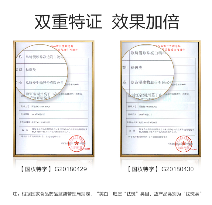 擁有雙美白認(rèn)證(不是所有面膜都可以將美白淡斑打在包裝上,而歐詩漫可以?。?/p>