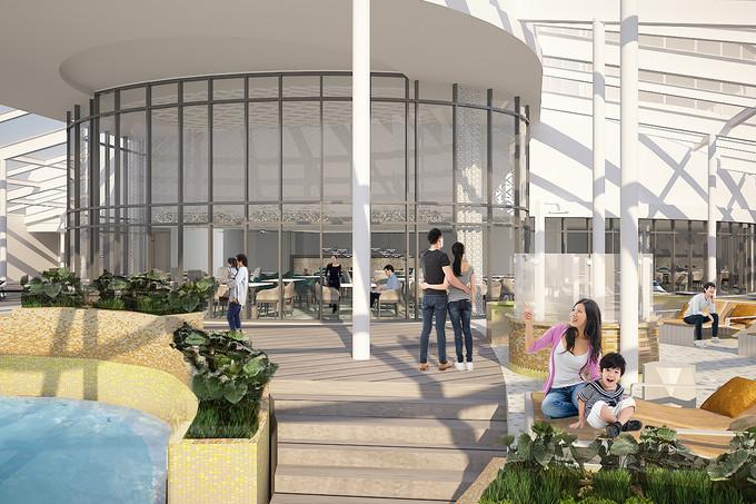 繼續(xù)往船尾走,位于整個甲板中部的,是一塊長方形的露天泳池,周圍整齊地擺放著沙灘椅供游客休憩,旁邊還有兒童游樂設(shè)施,讓小朋友也能在露天的環(huán)境中享受海洋光譜號所帶來的歡聲笑語。