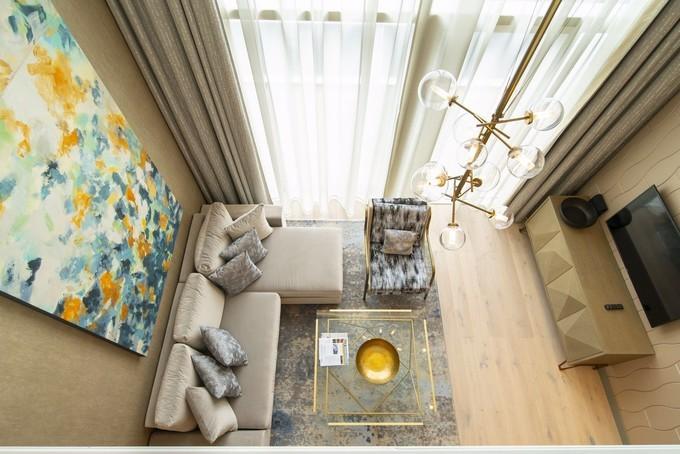 房間里面的整體布局很和諧,簡約又不失設(shè)計感,素色的沙發(fā)和米色的壁紙不會讓人覺得單調(diào),反而透露著一些溫馨。