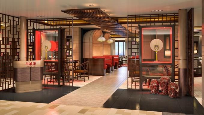 川谷薈主打川菜,但是我比較推薦的有四道,包括松鼠玉米魚、御廚煨海參、 樂山 干爆帶子、芙蓉魚露帝王蟹。還有很多其他正宗的川菜,像夫妻肺片,干鍋牛蛙、水煮魚、酸菜魚這些。鮮香麻辣的味蕾刺激一定能喚醒你沉睡的靈魂,蠢蠢欲動地繼續(xù)探尋光譜號其他的美食。