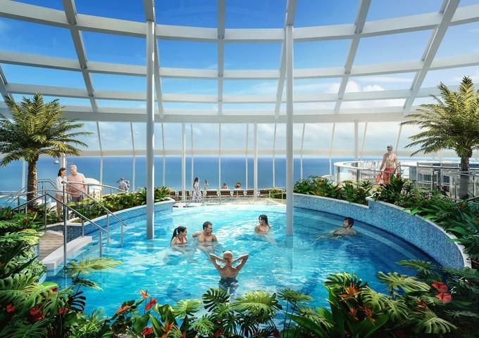 在光譜號的船首,你遠(yuǎn)遠(yuǎn)地就能看到一個巨大的玻璃設(shè)施,作為這艘游輪上受歡迎的娛樂項目, 北極星通常都是要排很久的隊,不過等你進(jìn)入 北極 星,跟它一起爬升到高點的時候,你會不禁感嘆這一切都是值得的,身處距離海平面300英尺的高度,你不僅能夠?qū)⒄矣屋啽M收眼底,還可以360度無死角的環(huán)視浩瀚海洋,此刻你就是讓人羨慕的存在。