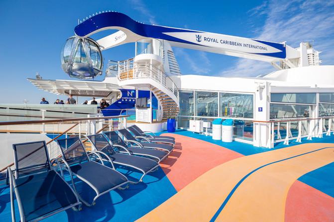 當(dāng)來到海洋光譜號的甲板,首先清新的海風(fēng)撲面而來,陽光灑在波濤上,泛起層層的璀璨星光。