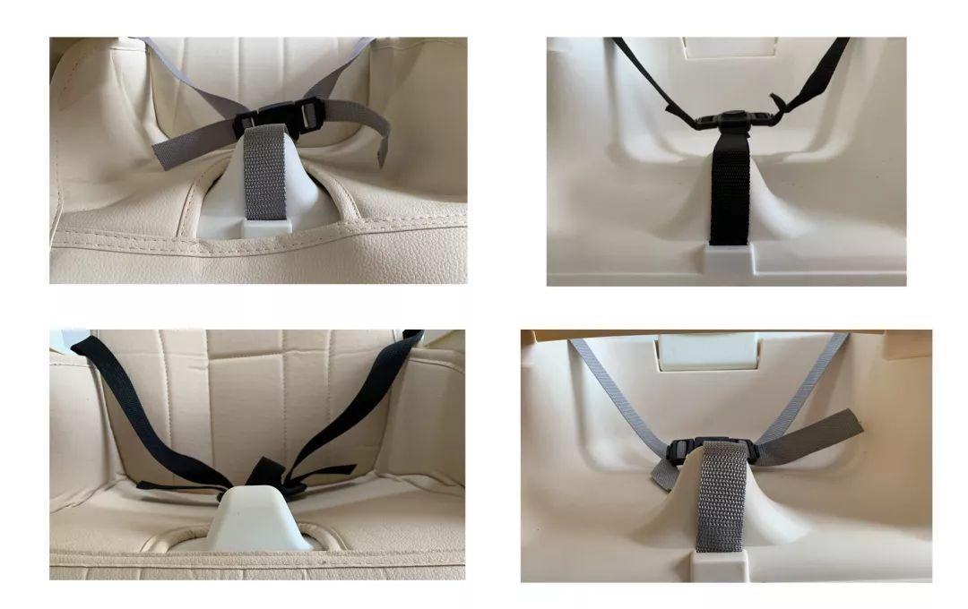 ①除勵(lì)步外,其他5款餐椅的帶均采用的是3點(diǎn)式設(shè)計(jì),能夠約束寶寶的腰部和襠部,避免側(cè)翻或下滑。