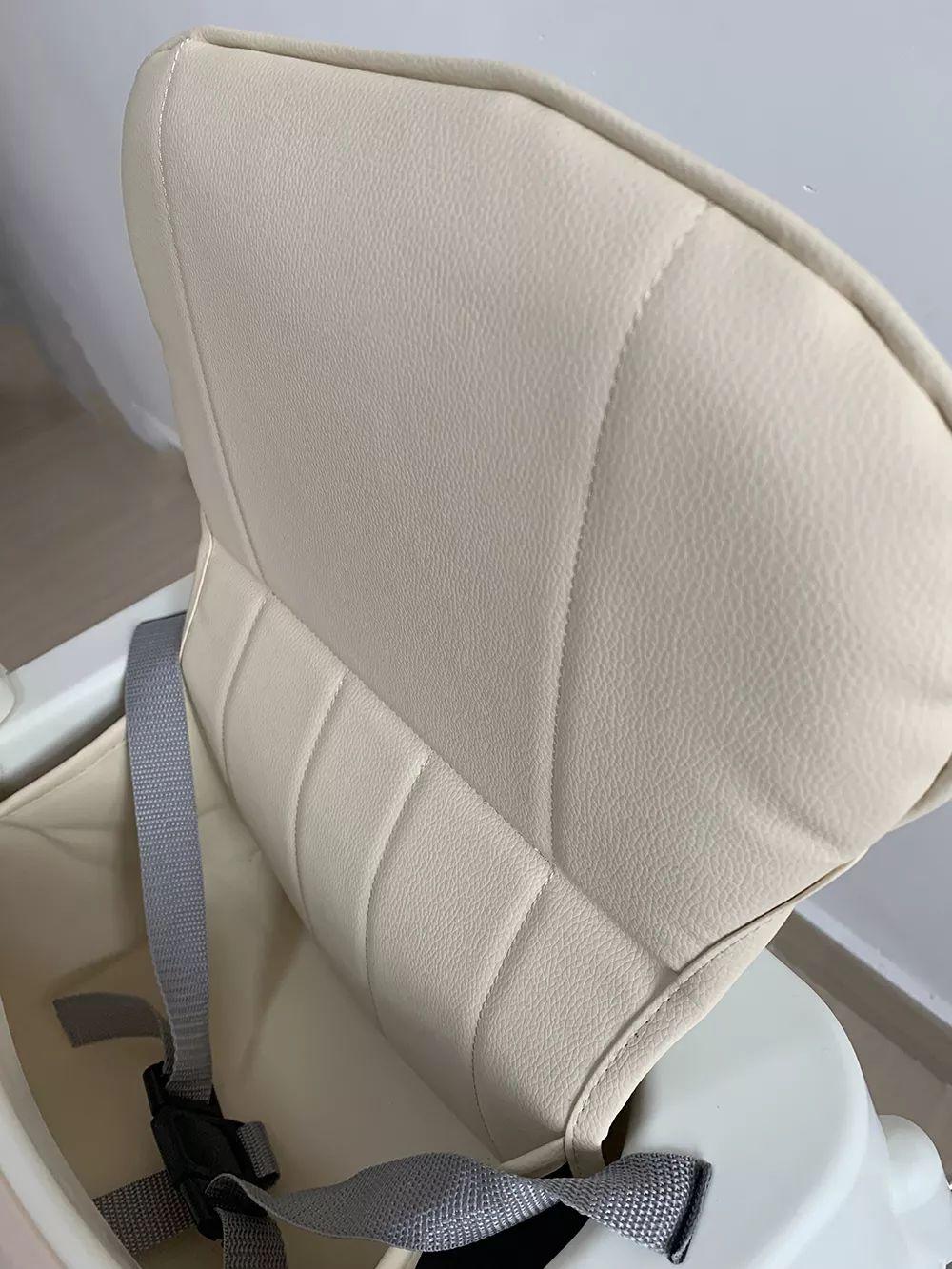②小主早安、勵(lì)步、安福瑞:配有PU皮套,比直接坐在PP塑料上要舒服一點(diǎn),如果夏天熱了也可以拆下來。但3款餐椅的PU皮較薄,柔軟度、舒適度的改良實(shí)際上比較有限。