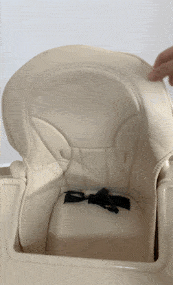 ⑥小主早安、勵(lì)步、安福瑞的靠背配有PU皮套,雖然比PP塑料材質(zhì)更舒服一點(diǎn),但皮革的味道較重,既影響用餐體驗(yàn),長期接觸還可能影響寶寶的健康。