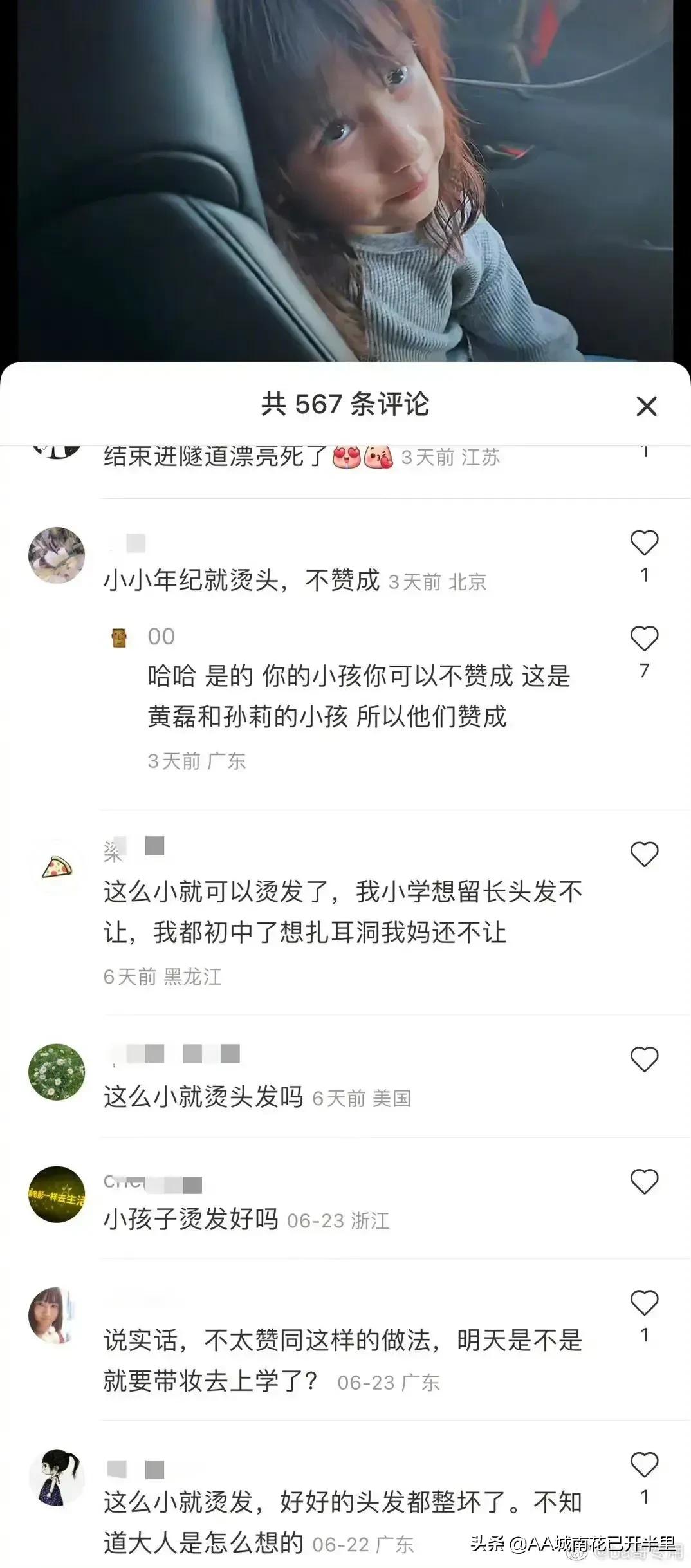 就覺得有些網(wǎng)友太有空,人家孩子燙個頭發(fā)有什么好議論的。作為一個家長,我個人認(rèn)為這種家庭教育是我所欣賞的,我家也是女兒,也愛美,想涂指甲油,想剪個漂亮的發(fā)型,這是她正常的需求,為什么要去壓抑孩子,愛美沒有對錯之說。只有在孩童時期被充分的尊重,感受到充分的愛,長大成人后這孩子一定是很有感,內(nèi)心有愛的。