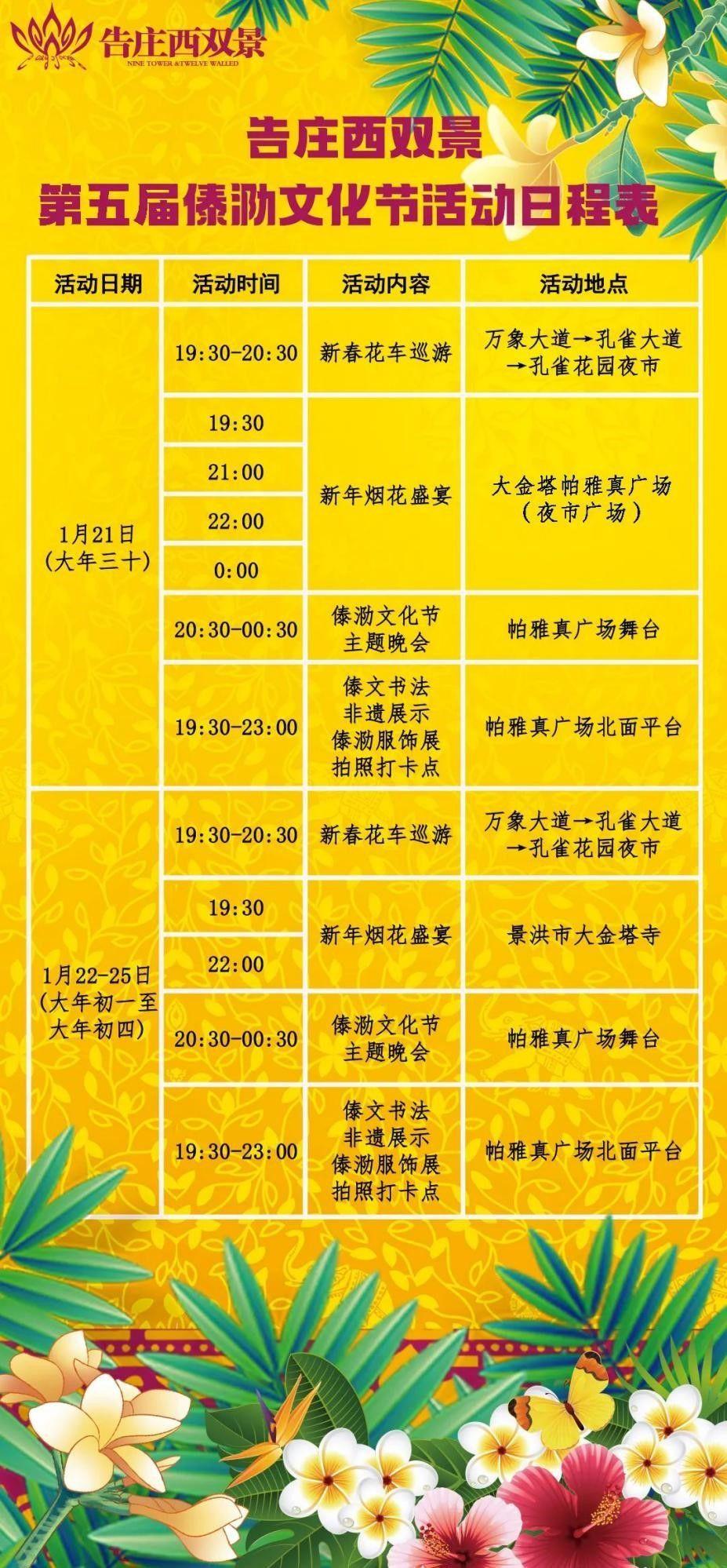 活動(dòng)一:【傣泐文化節(jié)主題活動(dòng)、新春花車巡游、新年煙花盛宴】