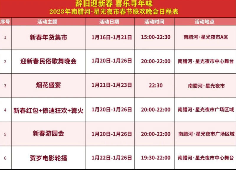 活動(dòng)四:【2023年春節(jié)、州慶黃金周活動(dòng)時(shí)間表】