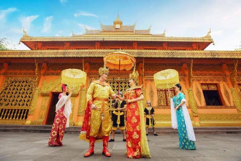 內(nèi)容包含:勐泐王朝時(shí)代的傣王帶領(lǐng)其王室成員,身著傳統(tǒng)傣王室服飾分時(shí)間段在曼聽御花園內(nèi)巡游。
