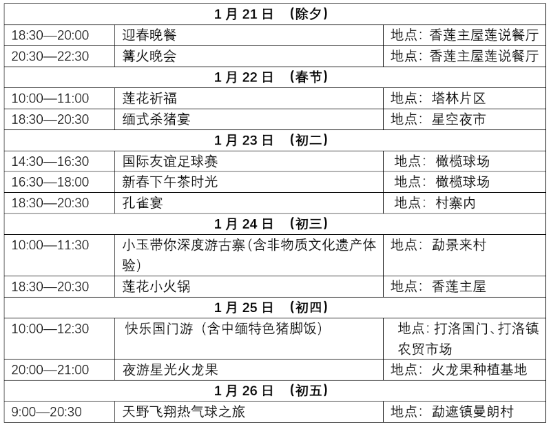 勐景來景區(qū)目前已恢復(fù)營(yíng)業(yè),并在春節(jié)期間推出豐富活動(dòng),詳情如下: