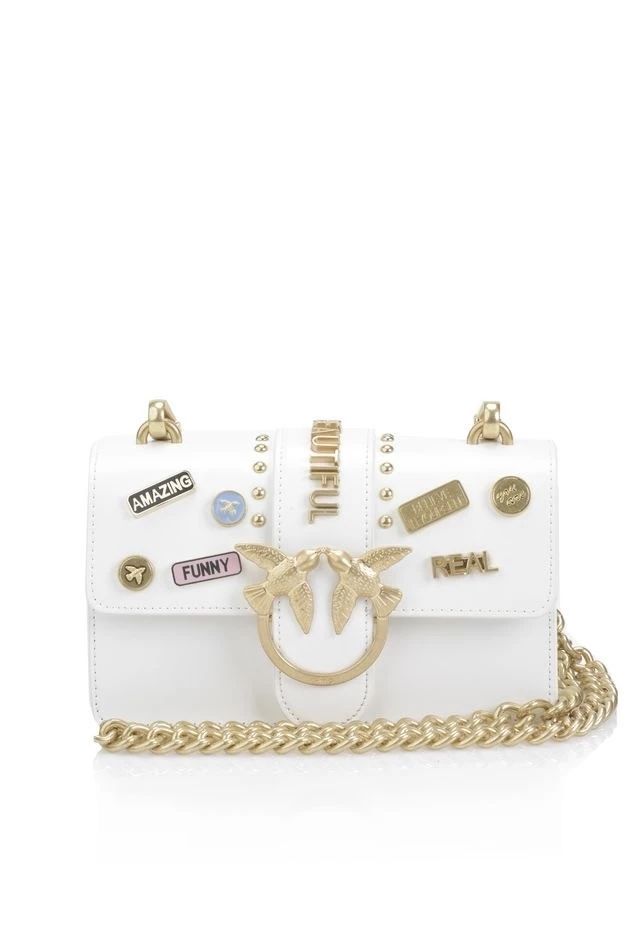 pinko的燕子包一直以多變的風格著稱,鉚釘和貼紙元素的融入有趣又時髦: