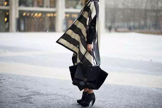 條紋披肩十分吸睛,這時候需要黑色手提包來中和一下。這波搭配想不拿滿分都不行!