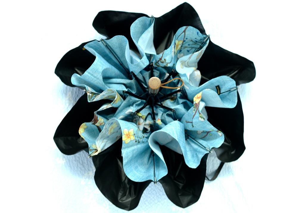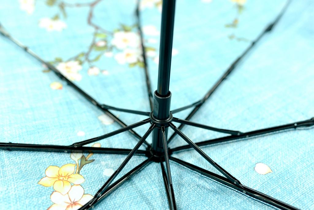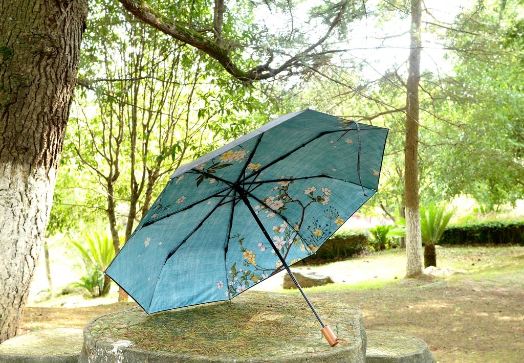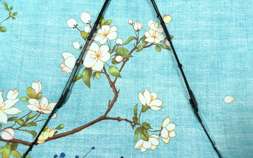 蕉下初被大家愛稱為“小黑傘”,主要因為傘面采用了全黑膠面,相對來說比較沉悶,愛美的女生會覺得不美觀,后來又逐步改進為單色傘面、花朵傘面,現在終于出了頗具特色的文藝圖案。本次我評測這款喚做:依杏。聽名字就很有詩意了,藍色的底面,繪有花鳥,具有比較鮮明的特色。