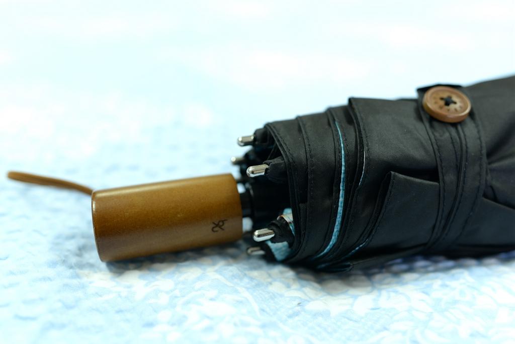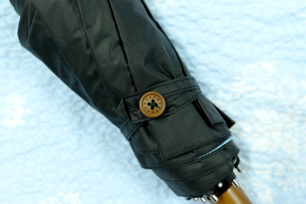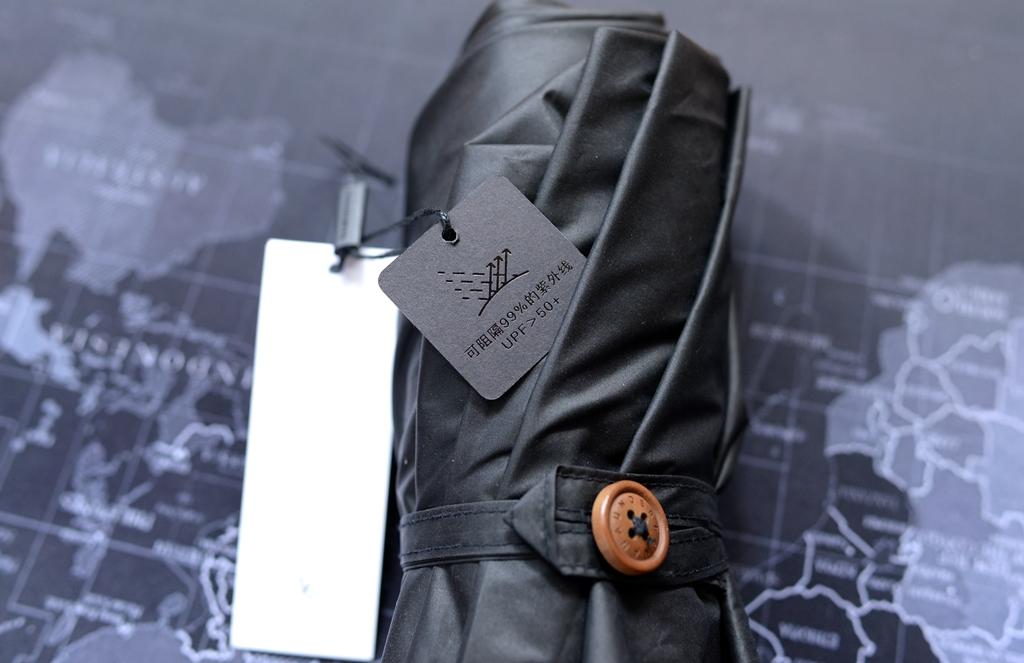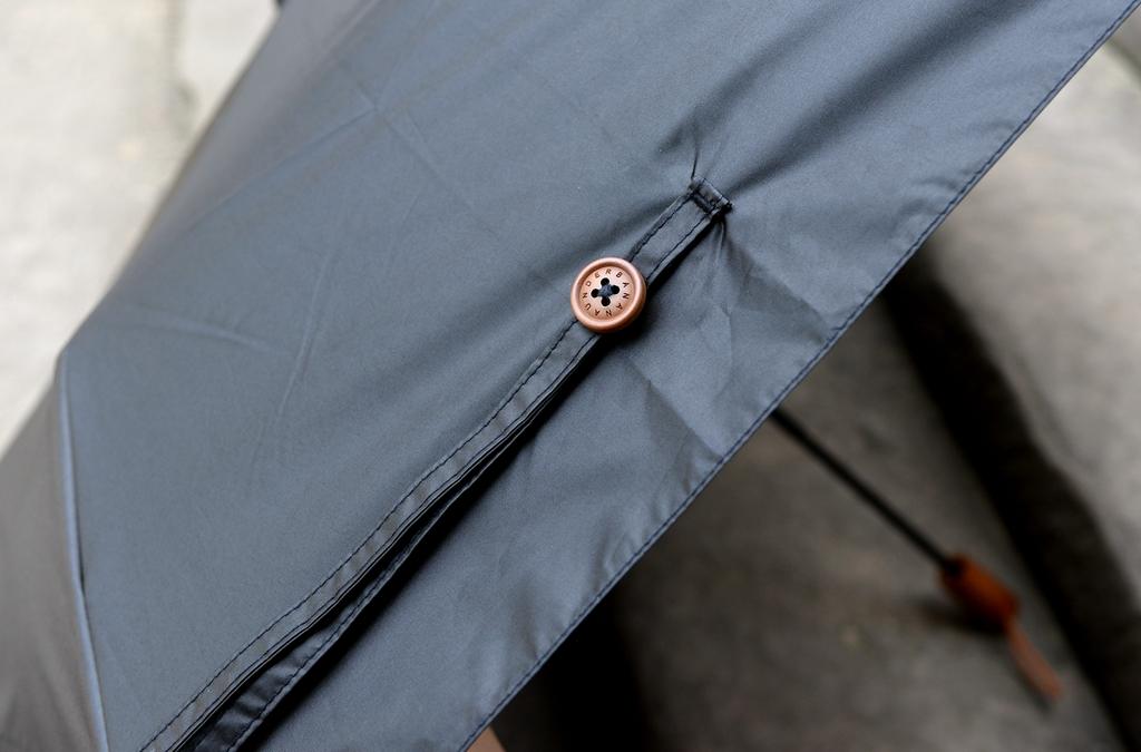 蕉下本次改進了這一點,使用了看似更為原始的木扣。同時傘繩處不還做了藝術折角處理,感覺雖然雙層傘面比較厚,但是依然可以很方便而隨意的扣上。