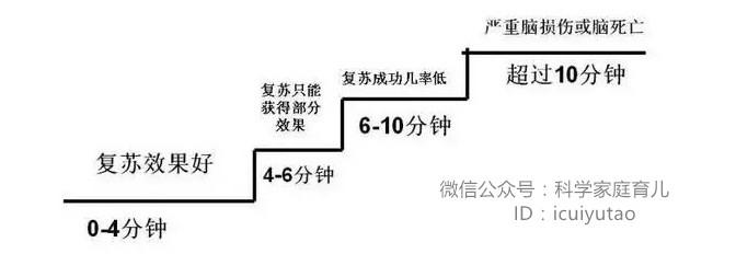 當(dāng)兒童處于危難時(shí),為緊急的就是保持或恢復(fù)兒童的呼吸和心跳,這樣才能大限度的保持兒童的生命。在保持生命的過(guò)程中,爭(zhēng)分奪秒是關(guān)鍵的關(guān)鍵。因?yàn)橐坏┖粑奶V箤?duì)人體的影響與分秒相關(guān)(見(jiàn)下圖1)。