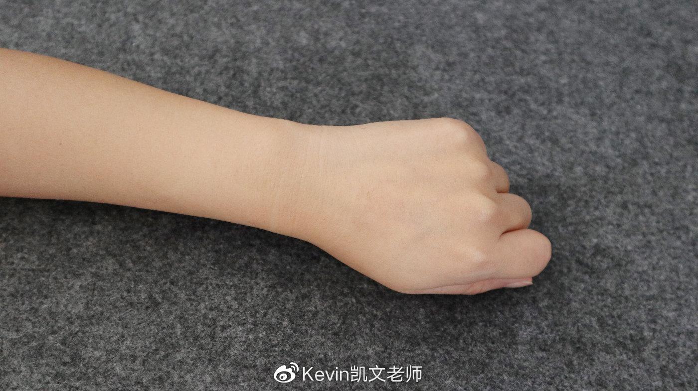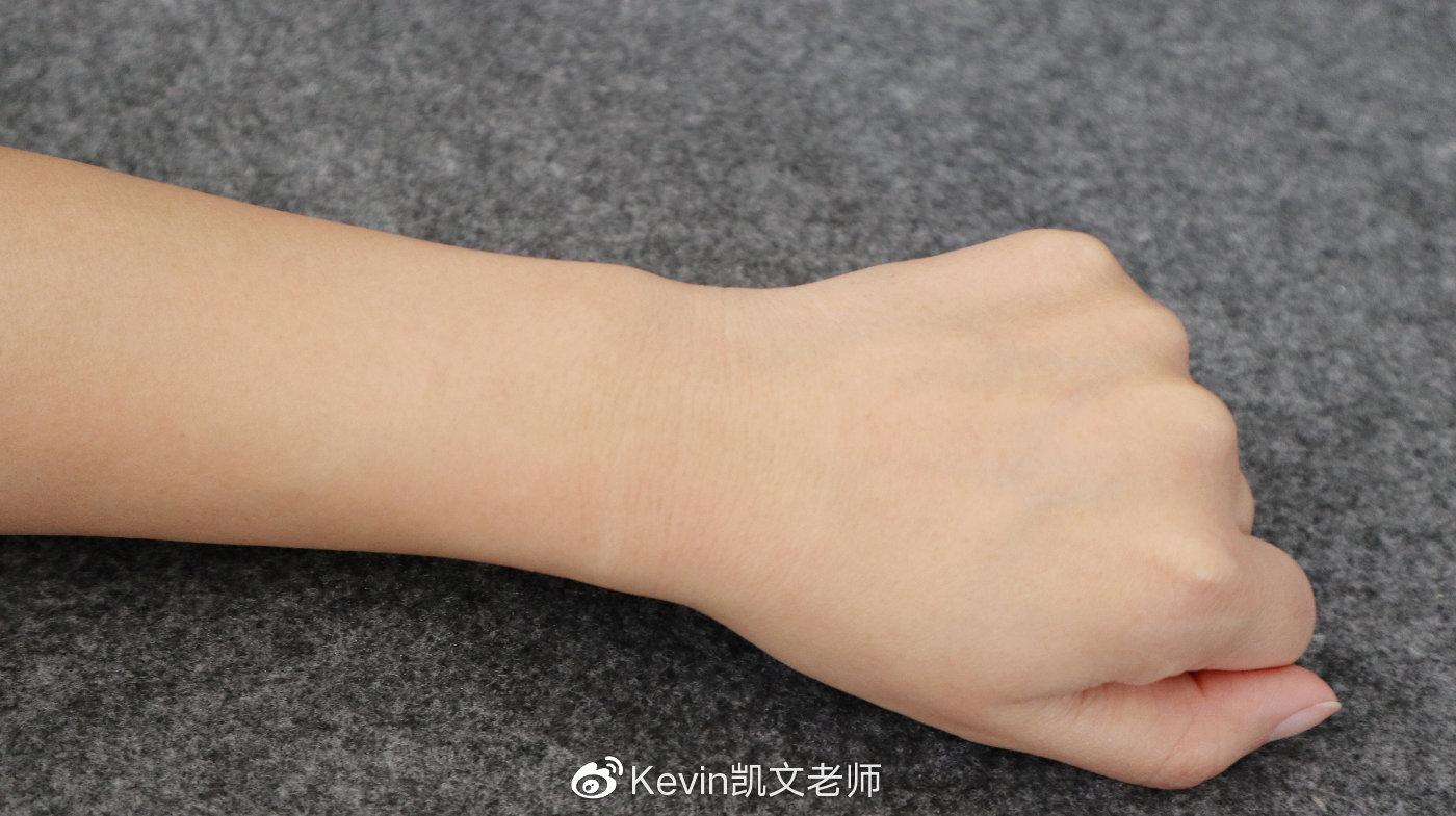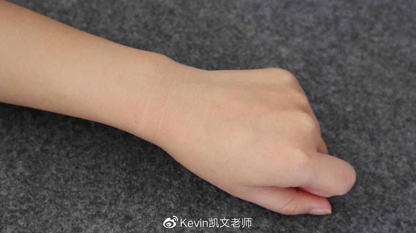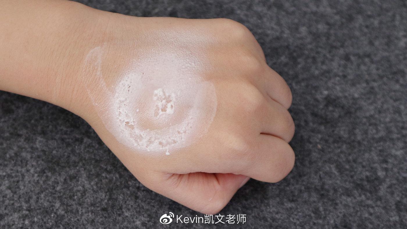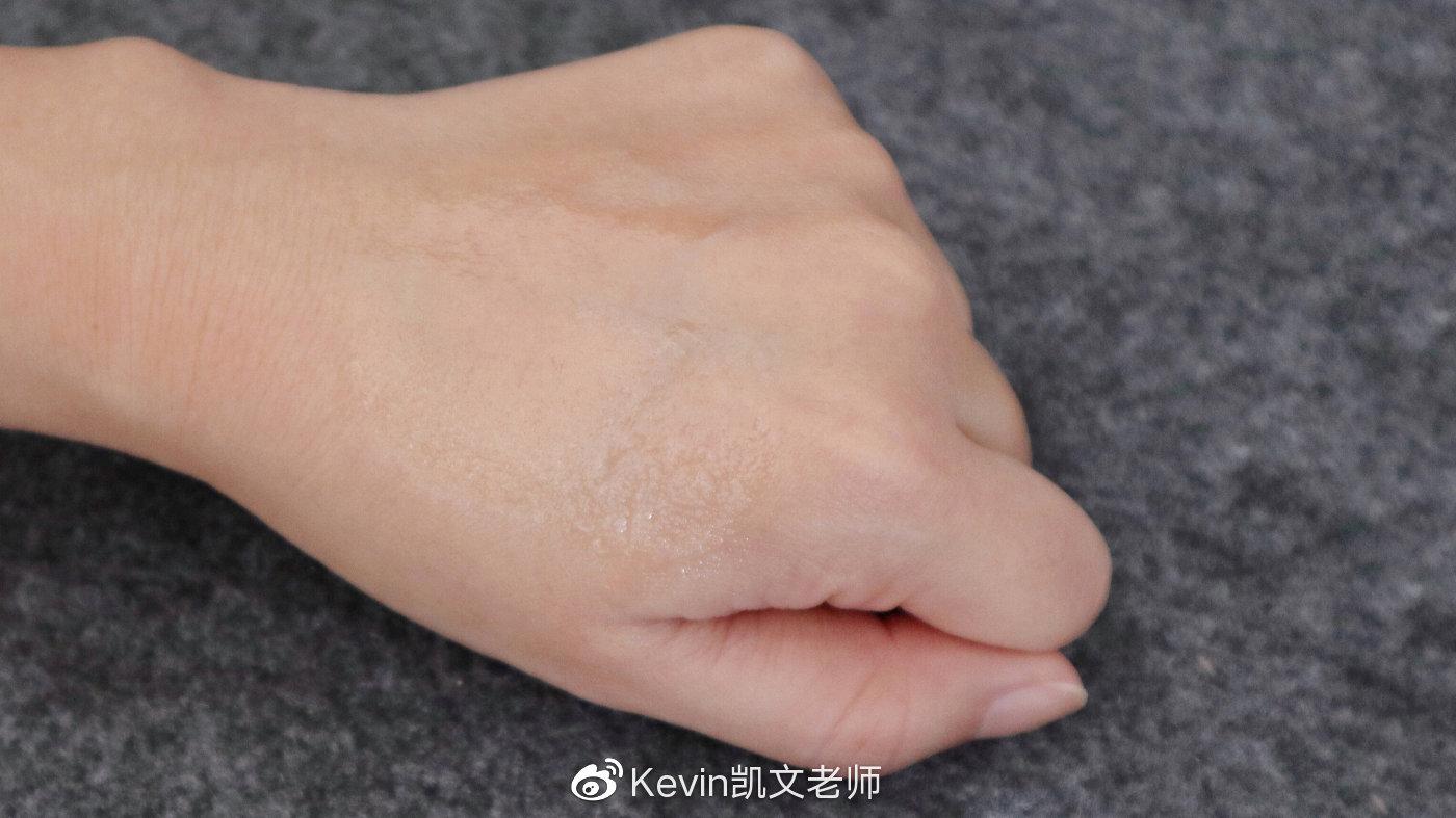 在手背上噴水測試它的防水性,表現(xiàn)也很不錯