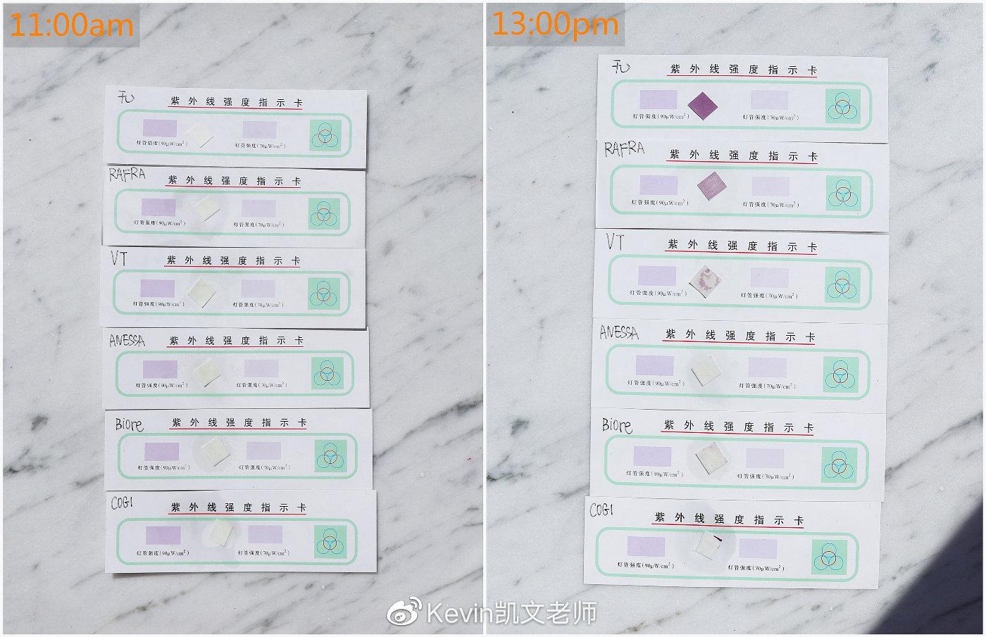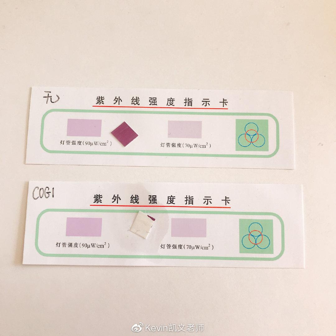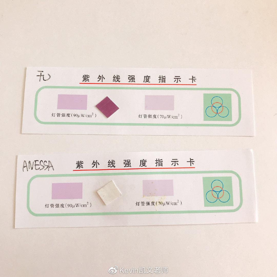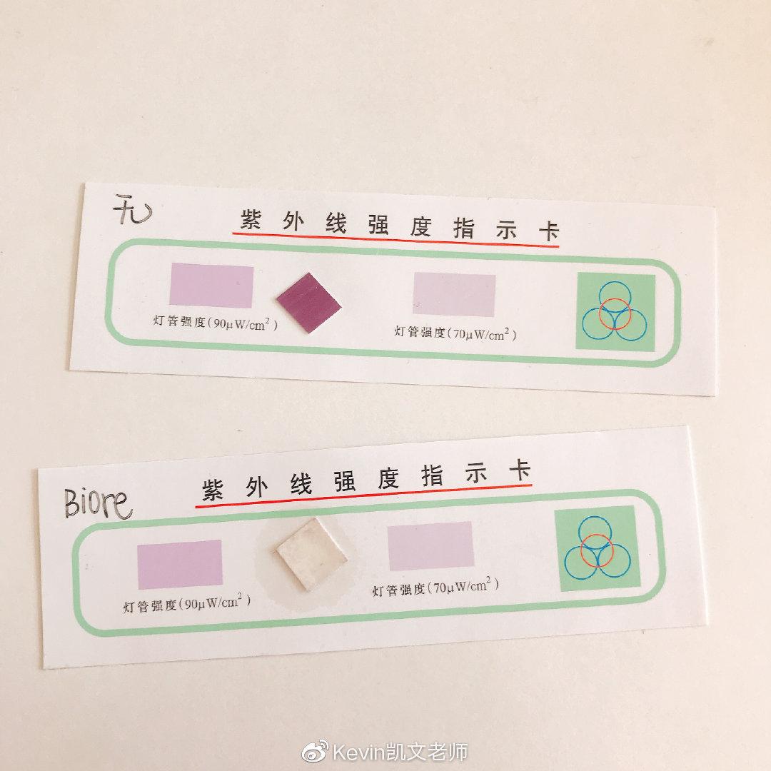 紫外線測試卡上出現(xiàn)了大范圍的淺紫色