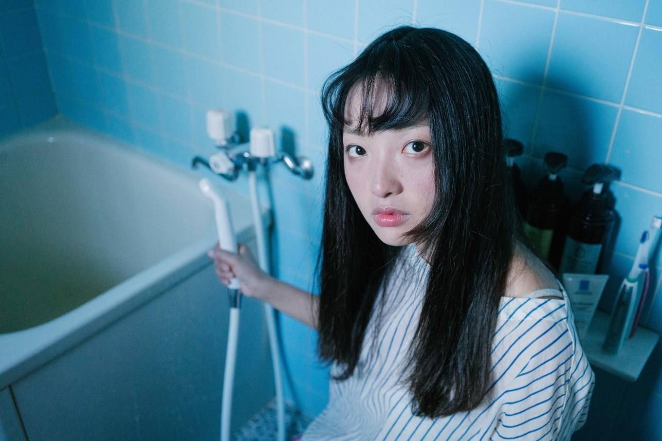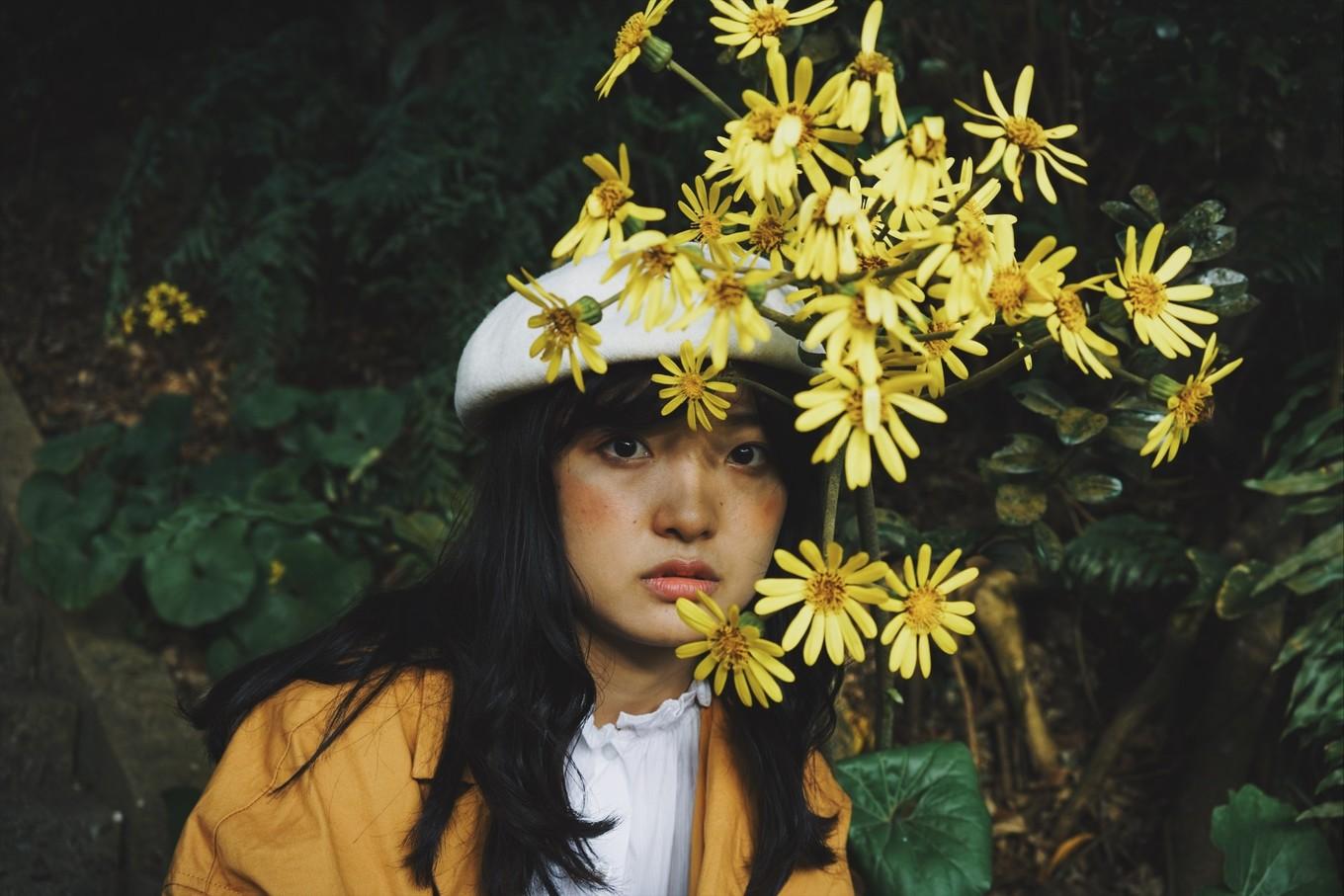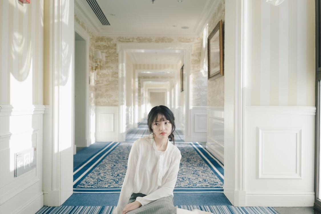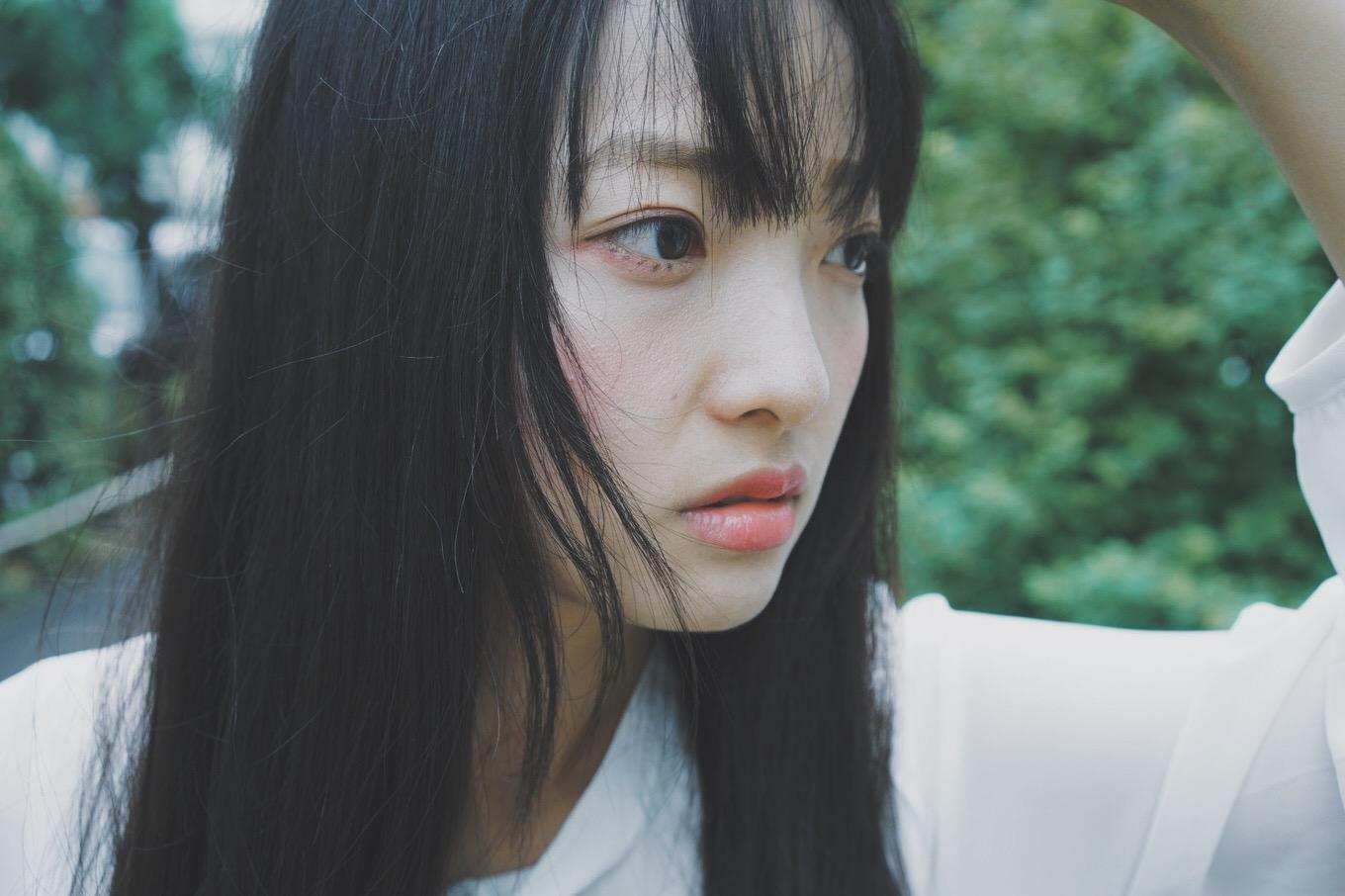 下圖攝于 京都 鳥屋書店,眼部只用了輔助的偏粉色系來畫,順著眼部線條在下眼眼瞼掃一點,珠光臥蠶的效果就出來了,用主色系棕色盤在鼻梁畫高光,輪廓很柔和,整體裸妝感,清新又少女。