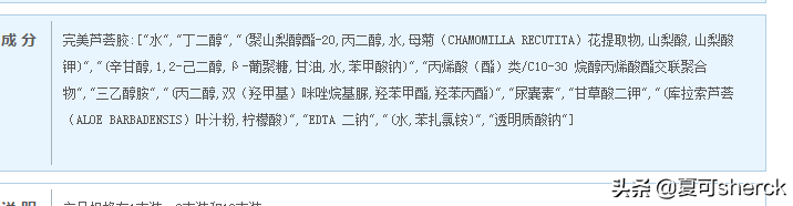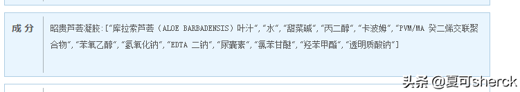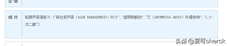 昭貴也是比較有年限了,算是背景靠的住了。應(yīng)景先說(shuō)蘆薈膠。不上圖直接成分表了。