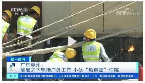 廣東惠州一名二十多歲在工地干活的男子,因長時間暴曬出現(xiàn)身體不適,體溫超過39℃,被緊急送往醫(yī)院。