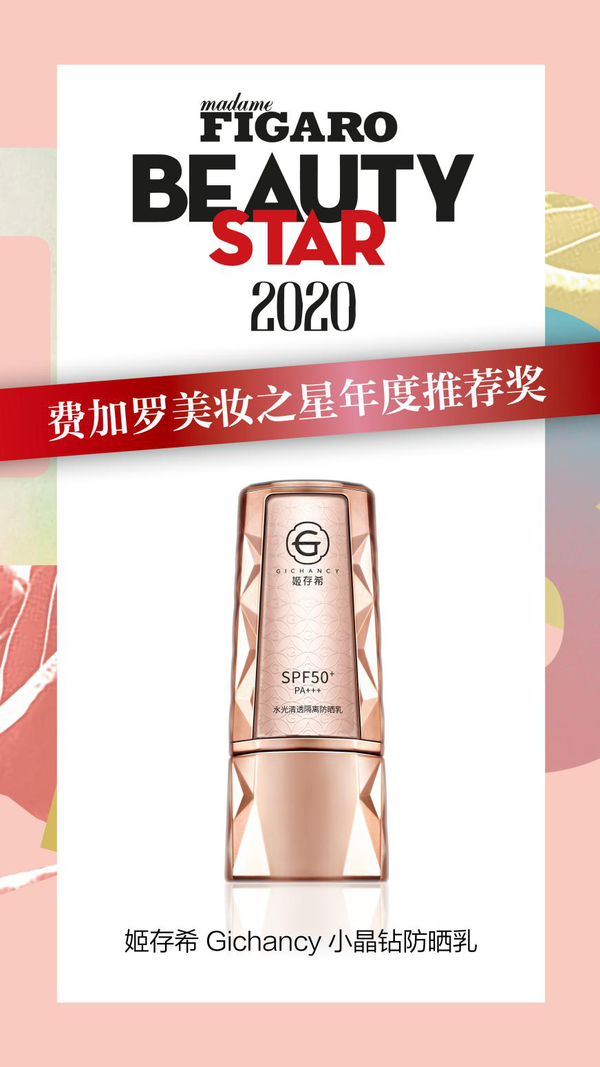 姬存希小晶鉆防曬乳獲2020“費加羅美妝之星年度推薦獎”