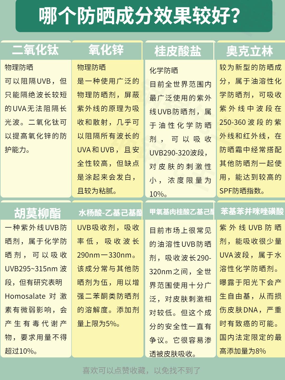 290-320波段,對皮膚的刺激性小,濃度限量為10%。