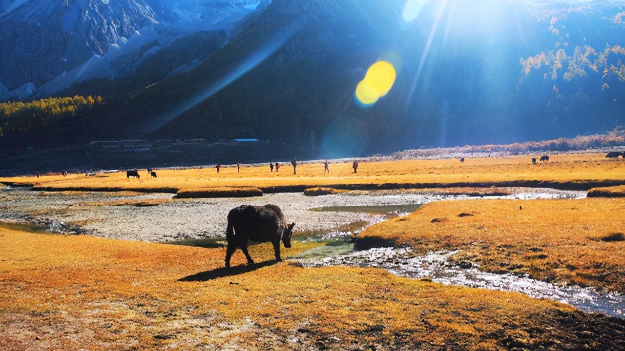 秋季(9~10月)稻城亞丁美的季節(jié),紅草灘,萬畝楊樹林下,還有那傲嬌的格?;ǎ谎弁坏竭叺慕瘘S色。天氣好的時候,拍出來的照片有種瑞士的感覺。很干凈純粹的那種美麗。