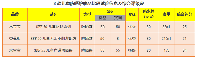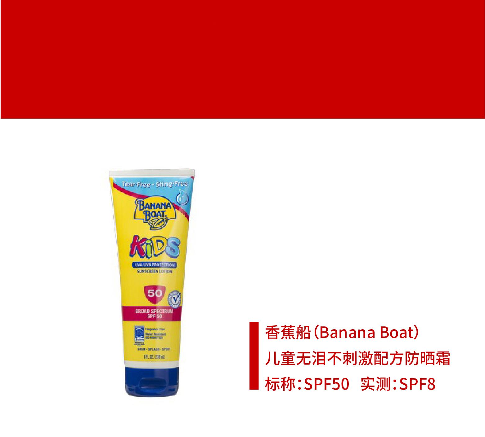 本次測評(píng)中,6款產(chǎn)品實(shí)測SPF值低于標(biāo)稱,其中香蕉船兒童防曬霜差距大,謹(jǐn)慎選購。