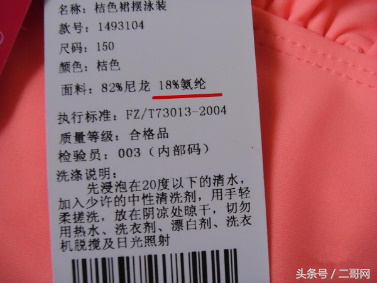 無論大人還是孩子,適合的泳衣材質(zhì)當屬氨綸,標準要求在15%,如果能達到18%-20%說明彈性就足夠好了。記住泳衣也要有防水標,辨別成分的辦法除了拉伸看回彈,就是查看說明。