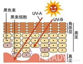 A1:防太陽(yáng),是我們提到的第一點(diǎn)重要的,陽(yáng)光中的紫外線UVB/UVA是我們防的主要對(duì)象。UVB波長(zhǎng)較短,對(duì)皮膚的傷害也比較淺,主要集中在表皮層,隨著新陳代謝,一般曬紅曬紅后4周內(nèi)即可褪去,皮膚也會(huì)逐漸恢復(fù)白皙;但是UVA則可怕的多,因?yàn)椴ㄩL(zhǎng)較長(zhǎng)UVA具有很強(qiáng)的穿透性,能夠深入以下,導(dǎo)致肌膚組織受損,從而引起肌膚老化、衰老。