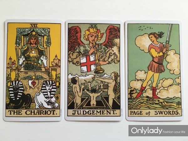 巨蟹座塔羅牌面:正位戰(zhàn)車、正位審判、正位寶劍侍從。