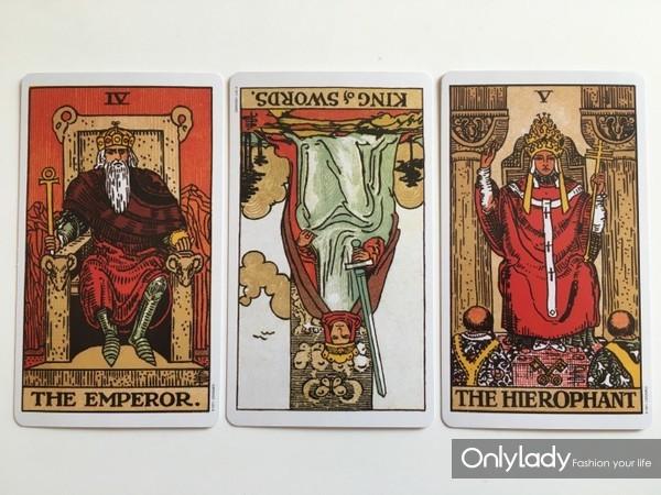 摩羯座塔羅牌面:正位皇帝、逆位寶劍國王、正位教皇。