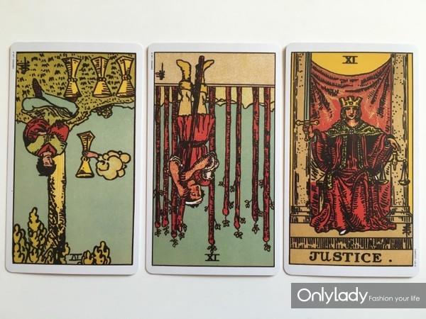 水瓶座塔羅牌面:逆位圣杯4、逆位權(quán)杖9、正位正義。