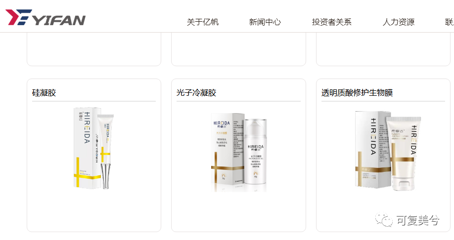 截圖自億帆總公司,旗下產(chǎn)品展示包括希睿達(dá)