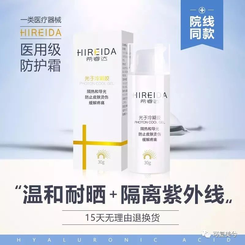 一類醫(yī)療器械里面是沒(méi)有防曬霜這一品類的,與之接近的就是光子冷凝膠,常見(jiàn)的光子冷凝膠就是激光脫毛之前涂身上那種冰冰涼的東西。