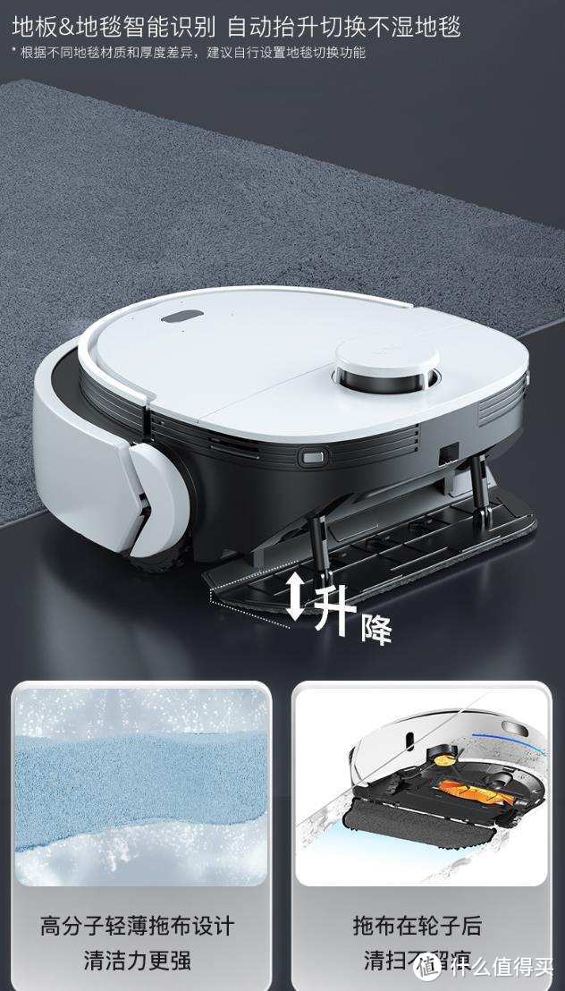 智能化程度高,可以自動識別地毯,發(fā)現(xiàn)地毯后自動升降拖布。