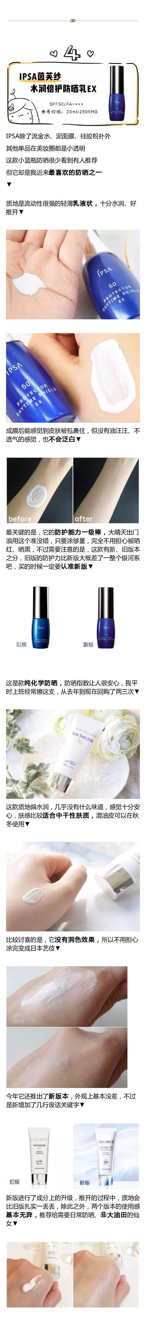 這款防曬不添加酒精,主要是蘊(yùn)含了玻尿酸和維生素E,所以用起來(lái)感覺(jué)很溫和,而且還能養(yǎng)膚呢~敏感肌膚、痘痘肌膚、還有干皮油皮我覺(jué)得都適用這款防曬耶~~真的超好用!