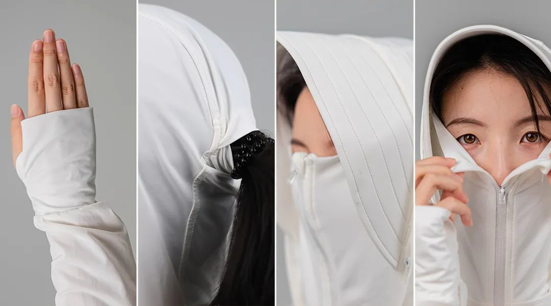 現(xiàn)在的防曬衣,防曬帽檐、護(hù)臉設(shè)計(jì)、發(fā)洞、指洞基本上都是標(biāo)配了。
