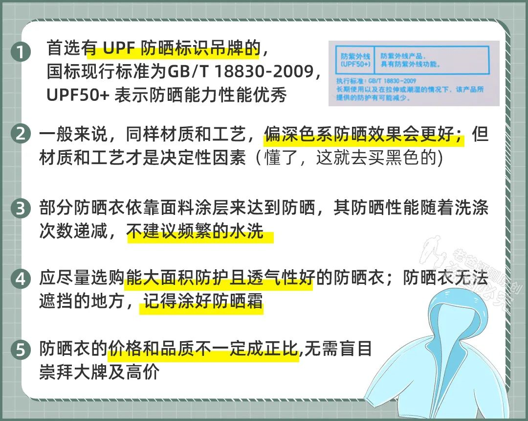 市面上的防曬衣很多,同一個(gè)品牌也有不同的款式,我們沒有辦法幫大家測到每一款。因此,我們幫大家從紡織研究員那里要到了防曬衣選購小貼士,除了看顏值,買防曬衣還要考慮這 5 點(diǎn)——