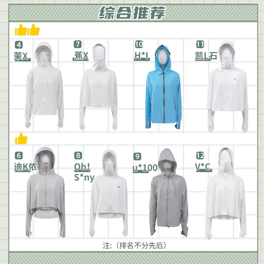 綜合防曬、涼感、透氣三項(xiàng)指標(biāo),大家可以根據(jù)自身情況,考慮這幾款: